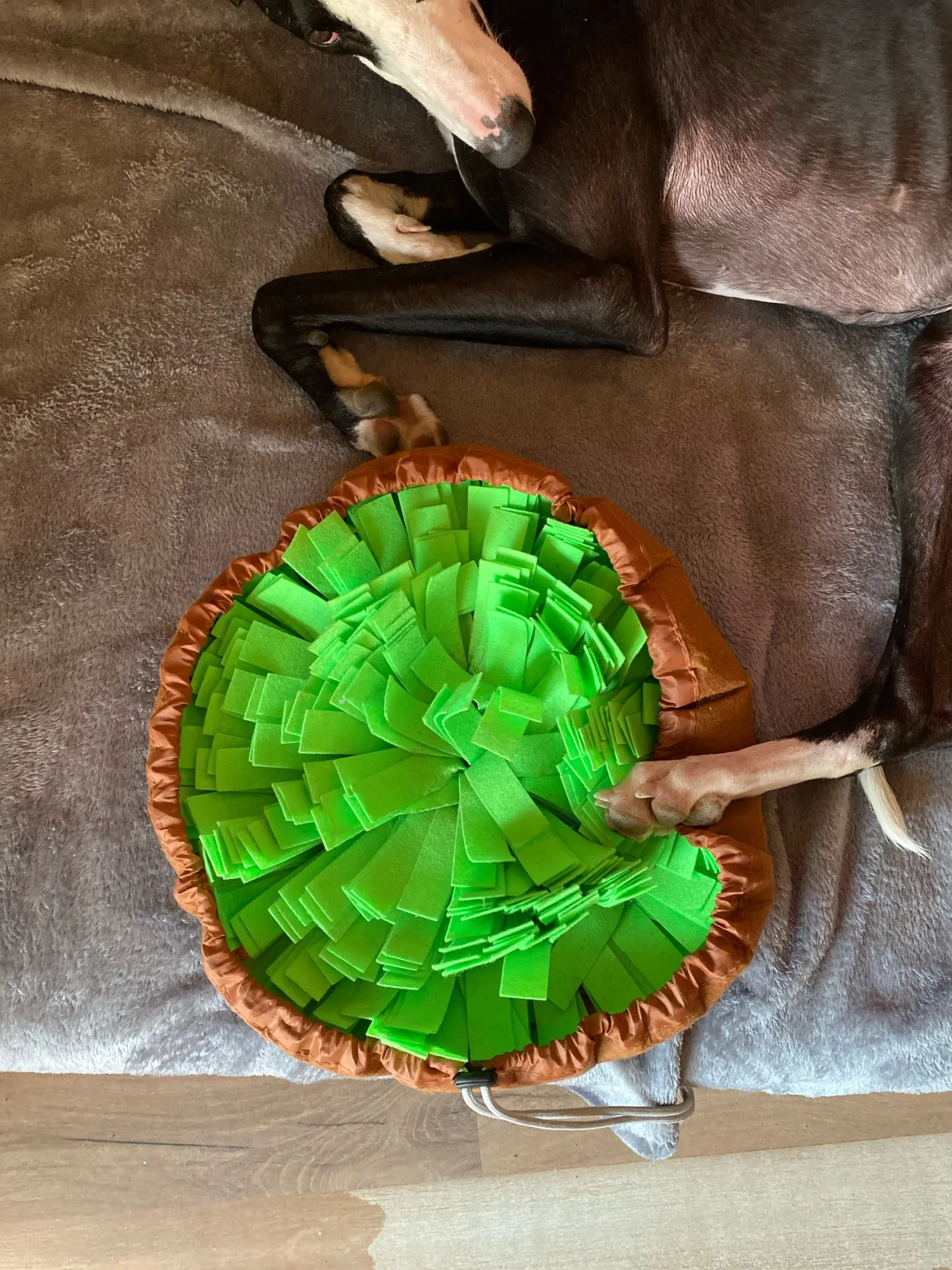 Slow down your dog's eating and stimulate their mind. This fun snuffle mat hides treats inside, keeping your dog entertained and mentally sharp for hours. Made from safe, washable felt material.